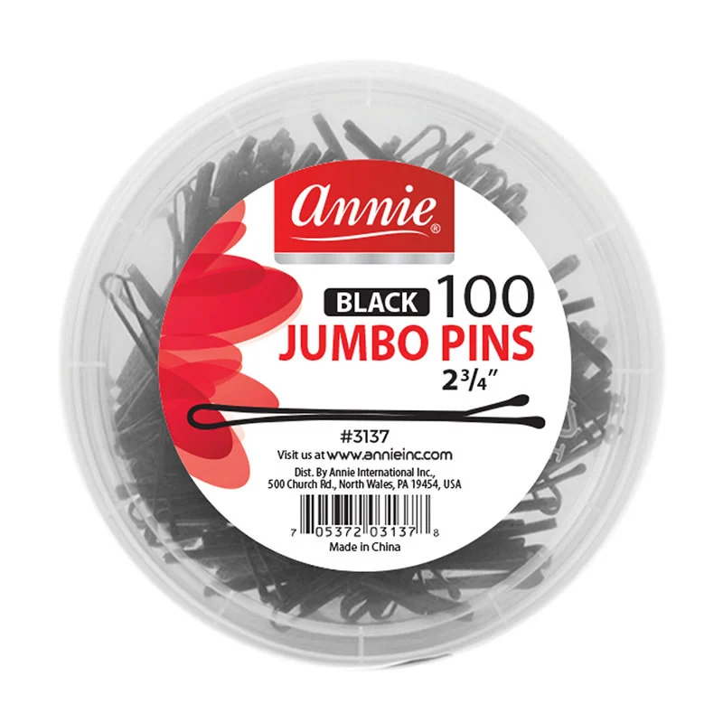 Annie Jumbo Bob Pins (100pcs Black) are professional-grade for secure updos and elaborate hairstyles. Extra thick double-bent design provides maximum holding power. Matte black finish blends naturally with all hair colors. Perfect for bridal styles, formal updos, and everyday buns. 100-piece value pack saves money. Essential for every styling kit. Fast shipping from Bronx!